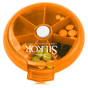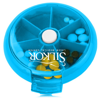 A positive return on your investment is assured when you use Round 7 Compartment Rotate Pill Box as your promotional gift. With features such as round shape, 7 separate compartments, thickness 2mm, transparent lid, middle push button rotate one box and the ability of storing medicine, clients will not only use it, they will remember who gave it to them.