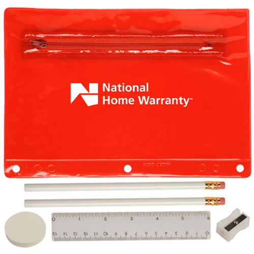 When you give a Deluxe Translucent School Kit to your clients which has your imprinted logo, you are leaving a reminder of your service or product. With features like customized handy pocket school kit, translucent packet with colored trim, round pencil eraser and sharpner, natural finish 6 inch ruler, inside standard 2 or 3Â ring binders, with zipper closure pouch, suitable for school going children and the ability of drawing, they will remember your company every time they use it.