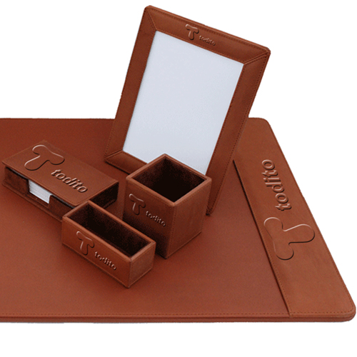 Adding a Five-Piece Leather Desk Pad Set with other marketing strategies will increase your overall advertising campaign. With uses such as organising desk and features like blalck bonded leather desk set, felt backing complete accessory, comes everything needed to organize, Â cost-effective bonded leather, without breaking the bank, includes desk pad pencil cup memo holder, business card holder and letter tray, this quality item is a combat multiplier on the advertising battle field.
